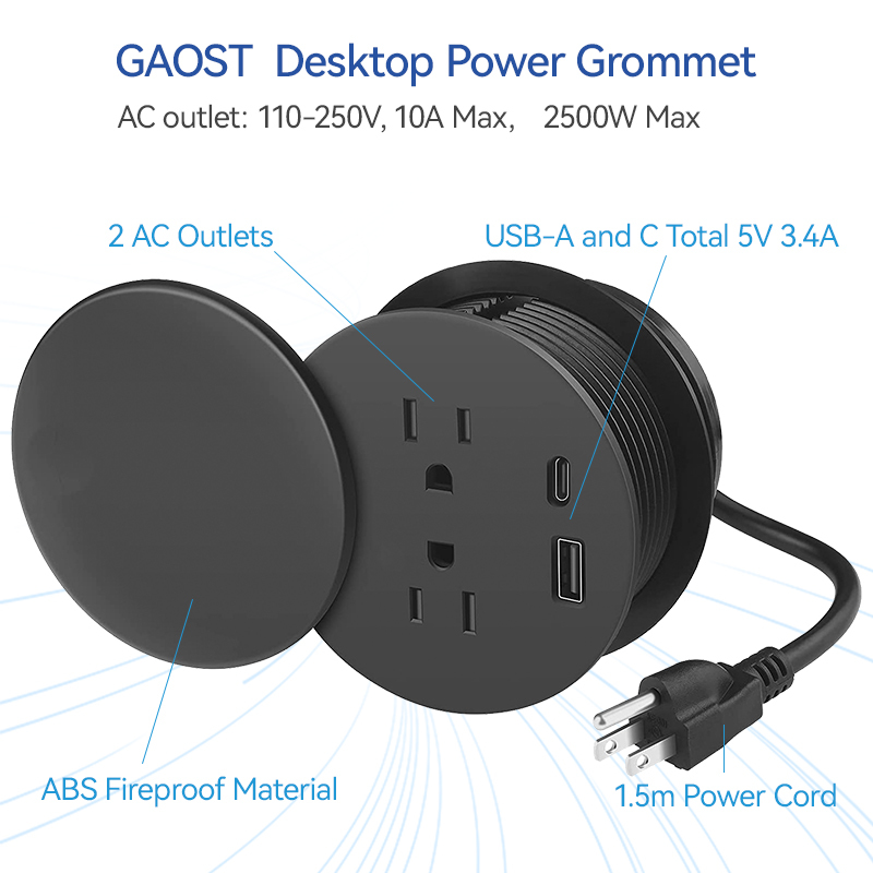 Desk Power Grommet With Rotate Lid Anti Water And Dust UL Certified 20W Charging 80mm Hole