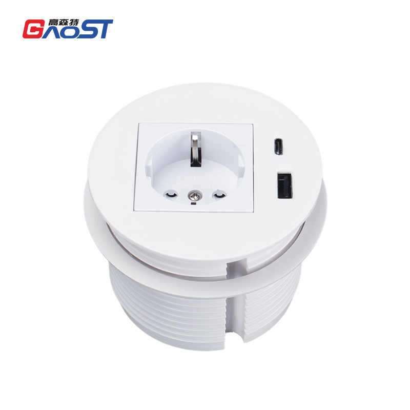 Our Table Mounted Sockets With 2 Type B POWER Outlet QC3.0 USB Charge 80mm Hole UL Standard the ultimate solution for modern workspaces. Designed to be seamlessly embedded into your desk surface, it provides convenient access to fast charging ports while maintaining a clean, professional appearance.