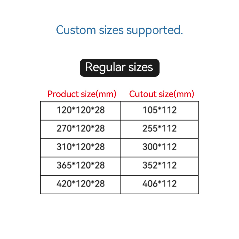 | Available Sizes | 120×120×28mm, 270×120×28mm, 310×120×28mm, 365×120×28mm, 420×120×28mm |