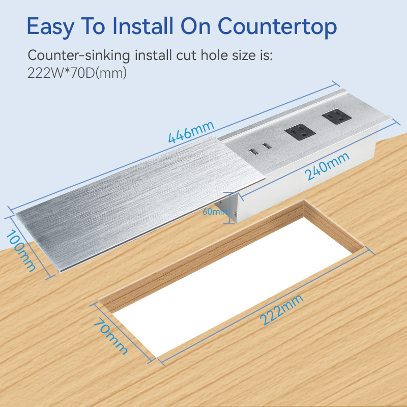 This Desktop Hidden Power Hub is engineered for seamless installation on conference tables, desks, and workstations, delivering convenient power and data connectivity solutions while maintaining optimal desktop organization and cleanliness.