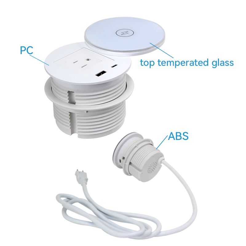 Recessed Desktop Power Strip with Wireless Charging Pad and Rotating Cover white 82mm hole