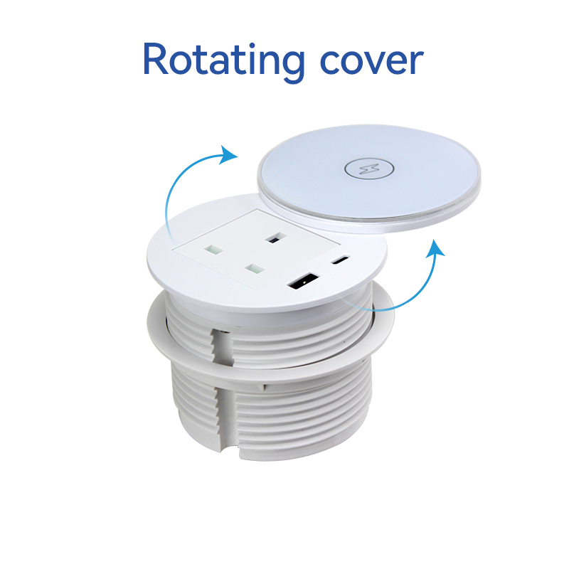 Recessed Desk UK Outlet with Rotating Wireless Charging Cover 82mm Grommet